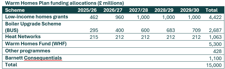 The current schemes for low-income retrofit of the Warm Homes Local Grant and the Warm Homes Social Housing Fund will continue as planned, with an additional £754m allocated for social housing. These will then be replaced by a consolidated scheme for low-income delivery, with details to be announced this spring.