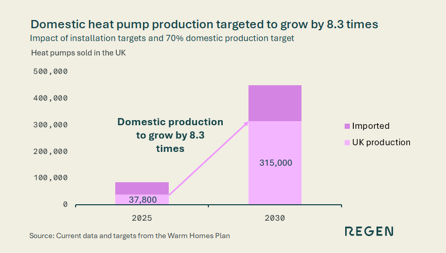 There is also an ambitious target to grow the domestic manufacture of heat pumps to 70% of those installed. Taken alongside the increased installation target, this equates to a growth in domestic production of 8.3 times.